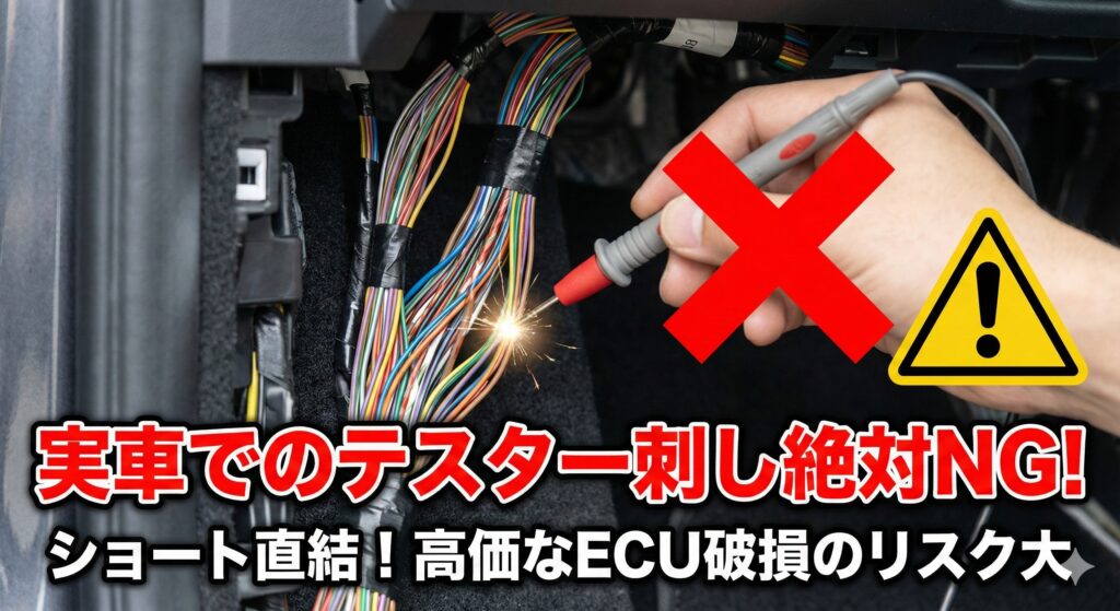 ガソリン車用のOBD2機器をそのまま挿すと機器が焼けるだけでなく、車両の通信網にノイズが乗り、走行中に「パワステ停止」や「画面全消灯」などの重大なエラーを引き起こす事例が報告されています。OBD2接続は特に慎重な対策が必要です。
